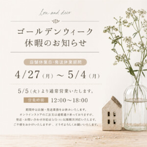 ゴールデンウィーク期間中の営業・発送について